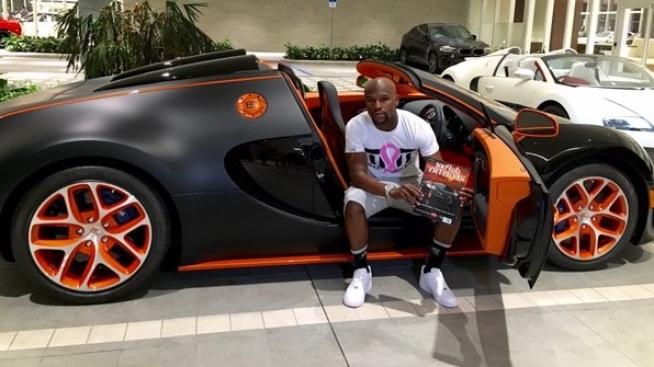 The Las Vegas boxer posed with his latest purchase, a 2015 Bugatti Veyron Grand Sport Vitesse, in a photo posted to his Instagram account Monday. Mayweather brought Obi Okeke who co-owns Fusion Luxury Motors in Chatsworth, California with him to Miami to put the deal together.